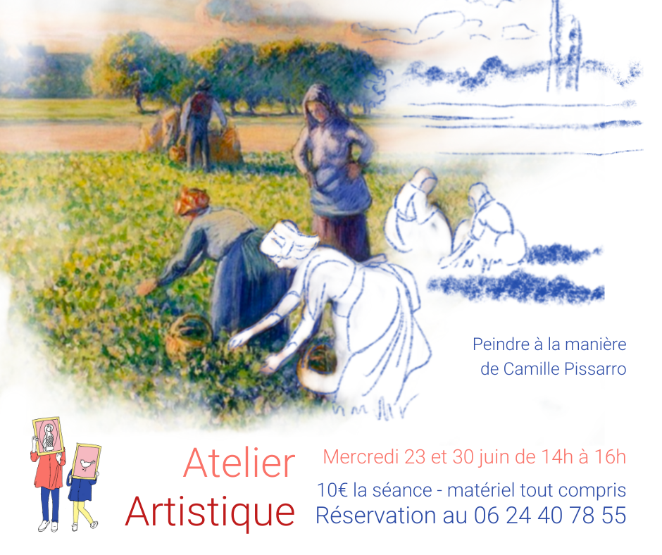 - mercredi 30 juin de 14h à 16h : A la manière de Camille Pissarro – Partie 2 : Mise en couleur
