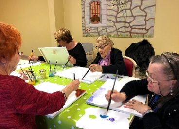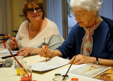 C’est avec beaucoup de douceur et de patience qu’il me plaît d’observer, voir les sourires timides disparaître, les maladresses s’estomper, les touches hésitantes s’affirmer, et l’œil à nouveau qui pétille. Ces séances artistiques sont de véritables moments de félicité au cours desquels on prend confiance en soi. Nous peignons ensemble, dans le moment présent, attentifs aux lignes et aux gestes. L’esprit se libère en même temps que le pinceau.